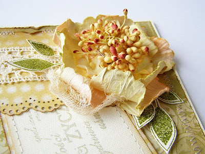 Kwiatek pierwotnie był większy, ale został zmaltretowany i efekt końcowy jaki jest, widzicie :) Listki odbite stempelkiem, który użyczyła mi Beatka.