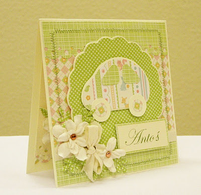4. Bardzo ładne kartki tworzysz w tej tak mało używanej kolorystyce. Ten dobór wzorków na zieleni i to autko - wyszło super :)