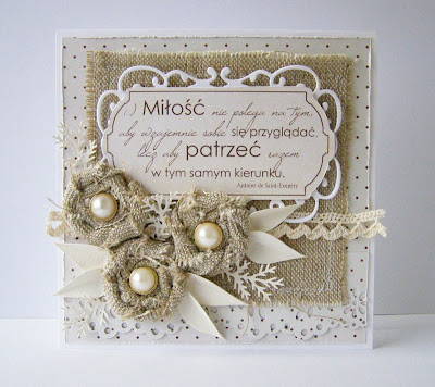 OdpowiedzUsuńPrzepiękna kartka:) Len wykorzystałaś znakomicie:)